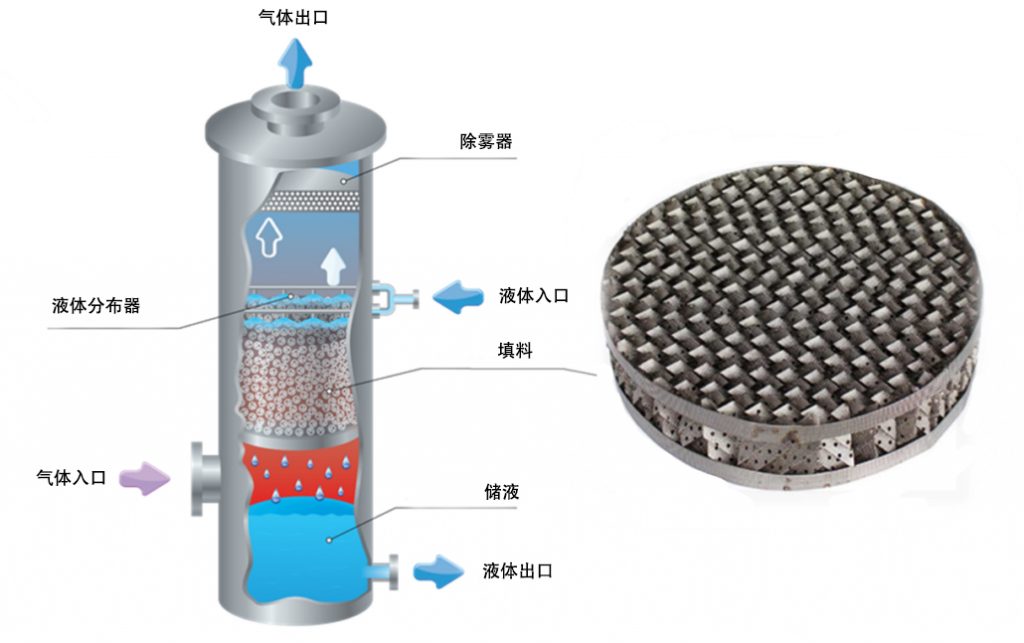 填料塔主要運(yùn)用物理吸附、化學(xué)吸附、蒸汽分餾、氣體吸附等原理進(jìn)行氣體-液體或氣體-固體的分離、吸附、脫除雜質(zhì)等工藝過程。填料層在塔體內(nèi)形成一個通道,氣體從進(jìn)氣口進(jìn)入填料層,經(jīng)過填料的阻擋和分散作用,使氣體在填料層中形成很多微小的液滴,進(jìn)一步增大了液體和氣體的接觸面積,從而使氣體中的雜質(zhì)被吸附或沉淀在填料層中。